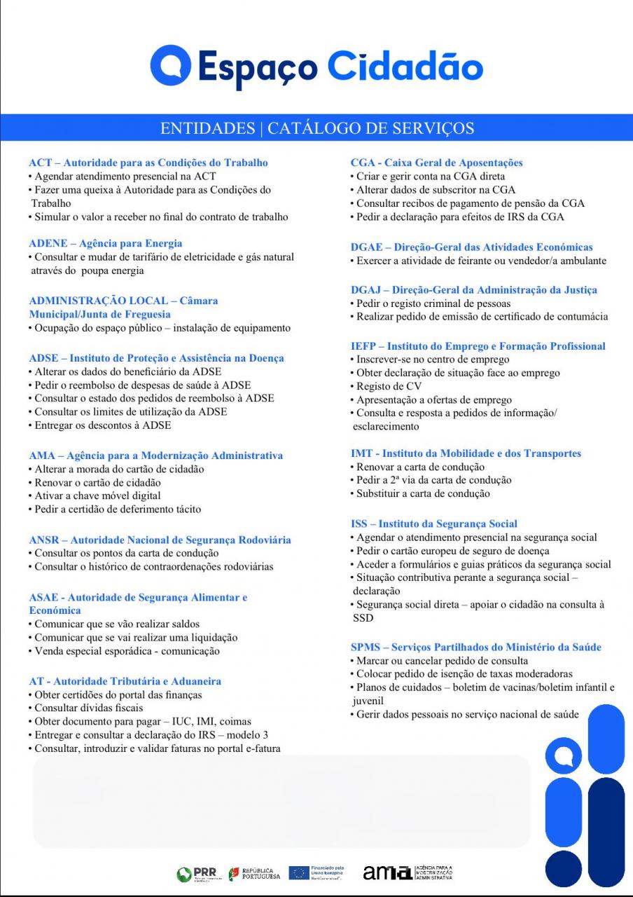 No Espaço Cidadão, disponível na nossa Junta de Freguesia, tem acesso a apoio em áreas como: